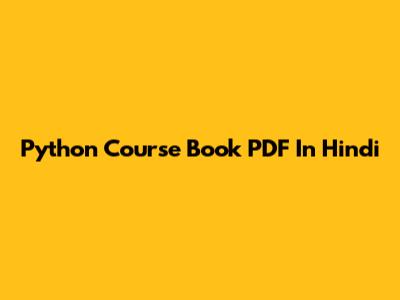 Python Course Book PDF In Hindi