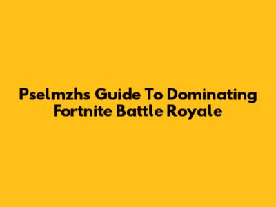 Pselmzh's Guide To Dominating Fortnite Battle Royale