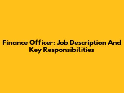 Finance Officer: Job Description And Key Responsibilities
