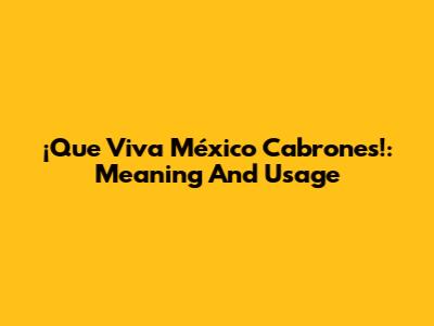 ¡Que Viva México Cabrones!: Meaning And Usage