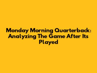 Monday Morning Quarterback: Analyzing The Game After It's Played