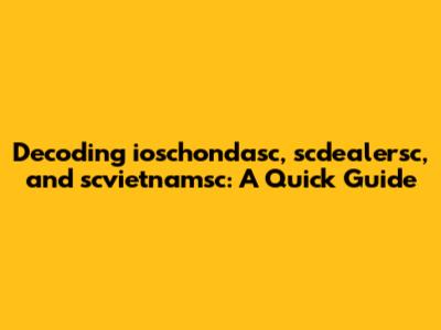 Alright, guys, let's dive into the intriguing world of "ioschondasc," "scdealersc," and "scvietnamsc." These terms might seem like a jumble of letters at first glance, but fear not! We're here to break them down and explore what they could possibly mean. Understanding these cryptic terms involves a bit of detective work and contextual awareness. It's kind of like deciphering a secret code, and who doesn't love a good mystery? So, buckle up as we embark on this linguistic adventure. Remember, the key to understanding complex terms often lies in breaking them down into smaller, more manageable parts. Think of it as solving a jigsaw puzzle; each piece contributes to the bigger picture. By examining the potential roots, prefixes, and suffixes, we can start to formulate educated guesses about their meanings. Plus, considering the contexts where these terms are likely to appear can provide valuable clues. Are they related to technology, business, geography, or something else entirely? The more information we gather, the clearer the picture becomes. Don't be afraid to explore different possibilities and think outside the box. Sometimes, the most unexpected connections can lead to the biggest breakthroughs. Keep an open mind, stay curious, and let's see what we can uncover together. By the end of this guide, you'll be well-equipped to tackle these enigmatic terms with confidence and clarity. So, let's get started and unravel the mysteries of "ioschondasc," "scdealersc," and "scvietnamsc"! It's going to be an exciting journey of discovery, and I'm thrilled to have you along for the ride. Let's get to the bottom of these terms and unlock their hidden meanings. Who knows what fascinating insights we might uncover along the way?
