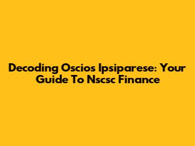 Decoding Oscios Ipsiparese: Your Guide To Nscsc Finance