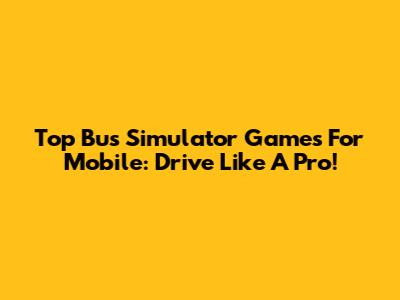 Top Bus Simulator Games For Mobile: Drive Like A Pro!