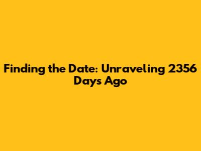 Hey guys! Ever wondered how to figure out a date a whopping 2356 days in the past? It sounds like a brain teaser, right? But don't worry, we're gonna break it down and make it super easy. This guide will walk you through how to calculate the date, the methods you can use, and why knowing this stuff can actually be pretty cool. Whether you're a history buff, a math whiz, or just plain curious, you're in the right place. Let's dive in and unravel this date mystery together! When you are trying to calculate this stuff, you have to understand it. What exactly is the date 2356 days ago? If you're trying to figure out a specific date, like the date 2356 days ago from today, you're essentially doing a reverse time travel calculation. It's like setting your clock back a certain amount of time. You're trying to determine the exact calendar date that corresponds to a point in the past relative to the present. You might be interested in the date for various reasons – maybe it's an important historical event, a personal anniversary, or a date related to a research project. The goal is to pinpoint the exact day, month, and year that falls 2356 days before the current date. Doing this requires understanding how many days are in each month, accounting for leap years, and using a bit of math to get the right answer. We're going to explore methods of calculation, including manual calculations, the use of online date calculators, and even how to use spreadsheet software like Google Sheets or Microsoft Excel. Each method has its own pros and cons, so we'll cover them all to give you a range of options. By the end of this guide, you will not only be able to find the date 2356 days ago but also gain a better understanding of how calendars and dates work. This can be super handy for a bunch of stuff, from planning events to understanding timelines. Are you ready to get started? Let's roll!