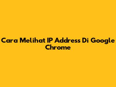 Cara Melihat IP Address Di Google Chrome