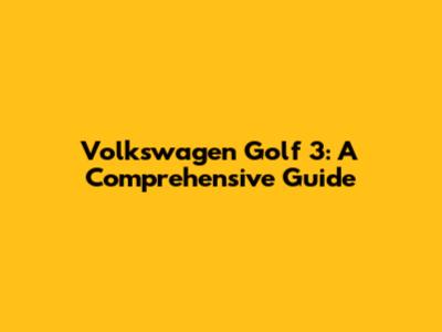 Volkswagen Golf 3: A Comprehensive Guide
