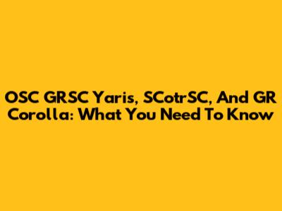 OSC GRSC Yaris, SCotrSC, And GR Corolla: What You Need To Know