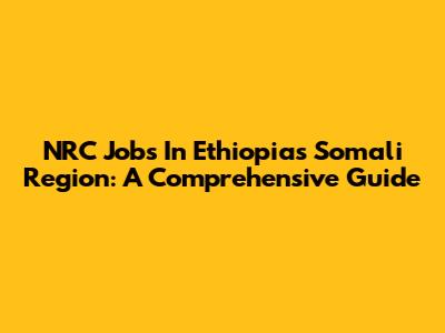 NRC Jobs In Ethiopia's Somali Region: A Comprehensive Guide