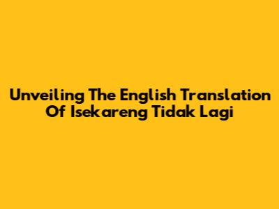 Unveiling The English Translation Of 'Isekareng Tidak Lagi'