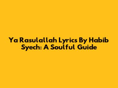 Ya Rasulallah Lyrics By Habib Syech: A Soulful Guide