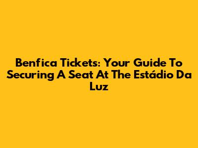 Benfica Tickets: Your Guide To Securing A Seat At The Estádio Da Luz