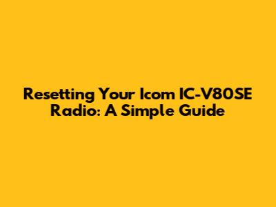 Resetting Your Icom IC-V80SE Radio: A Simple Guide
