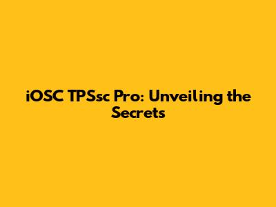 Demystifying iOSC TPSsc Pro