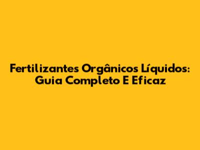 Fertilizantes Orgânicos Líquidos: Guia Completo E Eficaz