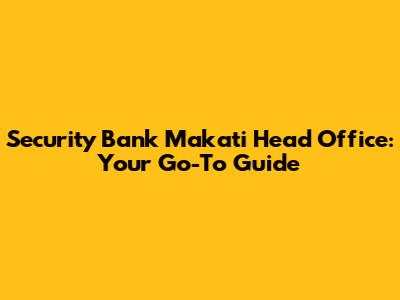 Security Bank Makati Head Office: Your Go-To Guide