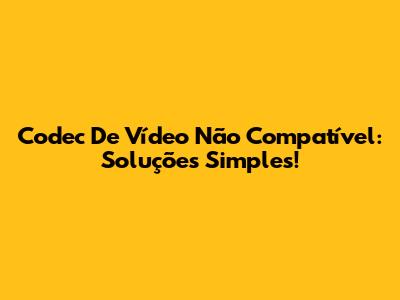 Codec De Vídeo Não Compatível: Soluções Simples!