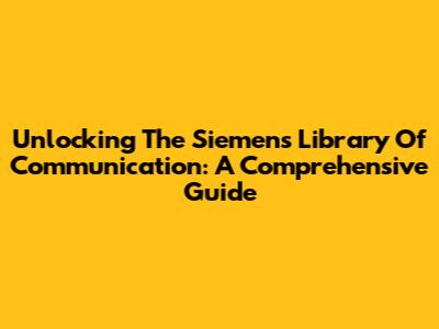 Unlocking The Siemens Library Of Communication: A Comprehensive Guide