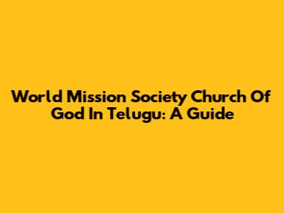 World Mission Society Church Of God In Telugu: A Guide