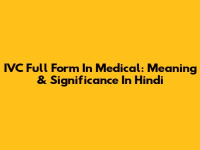 IVC Full Form In Medical: Meaning & Significance In Hindi