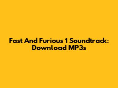 Fast And Furious 1 Soundtrack: Download MP3s