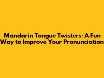 Getting Started with Mandarin Tongue Twisters: Where to Begin?