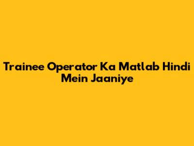 Trainee Operator Ka Matlab Hindi Mein Jaaniye
