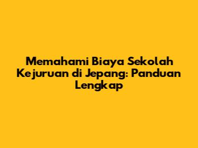 Memahami biaya sekolah kejuruan di Jepang adalah langkah awal yang penting bagi kalian yang berencana melanjutkan pendidikan di sana. Dengan mengetahui komponen-komponen biaya, perkiraan biaya untuk berbagai jurusan, dan tips mengelola keuangan, kalian dapat mempersiapkan diri dengan lebih baik. Ingat, perencanaan yang matang dan pengelolaan keuangan yang bijak adalah kunci sukses selama menempuh pendidikan di Jepang. Jangan ragu untuk mencari informasi sebanyak mungkin, bertanya kepada pihak yang berkompeten, dan memanfaatkan berbagai kesempatan yang ada. Semangat meraih mimpi di Jepang!