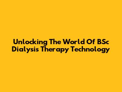 Unlocking The World Of BSc Dialysis Therapy Technology