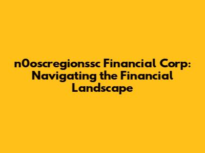 Hey everyone! Let's dive into the world of n0oscregionssc Financial Corp, and get you all caught up on the latest happenings. We'll be looking at everything from their recent moves in the financial sector, any exciting news, and what it all means for you. Ready to get started? Let's go!