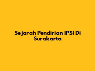 Sejarah Pendirian IPSI Di Surakarta