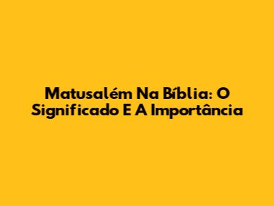 Matusalém Na Bíblia: O Significado E A Importância