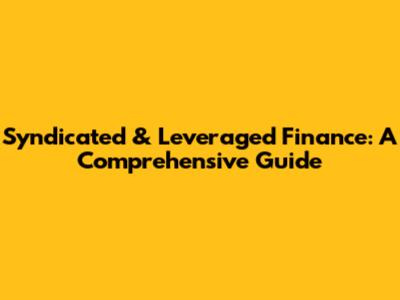 Syndicated & Leveraged Finance: A Comprehensive Guide