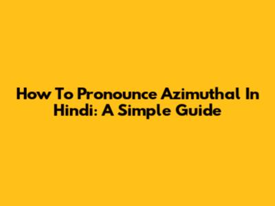 How To Pronounce Azimuthal In Hindi: A Simple Guide