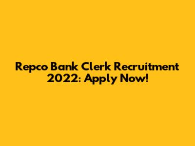 Repco Bank Clerk Recruitment 2022: Apply Now!