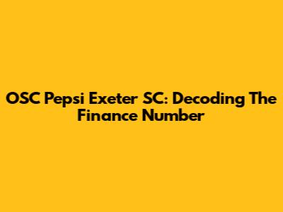 OSC Pepsi Exeter SC: Decoding The Finance Number