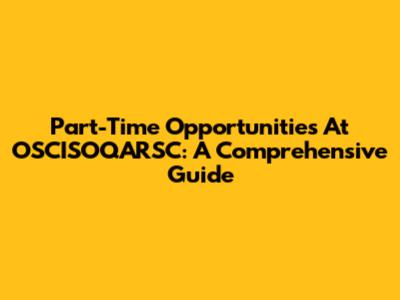 Part-Time Opportunities At OSCISOQARSC: A Comprehensive Guide