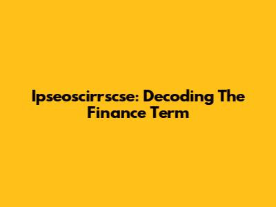 Ipseoscirrscse: Decoding The Finance Term