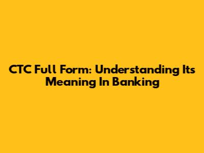CTC Full Form: Understanding Its Meaning In Banking