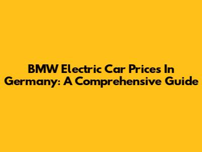 BMW Electric Car Prices In Germany: A Comprehensive Guide