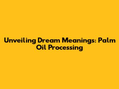 Unveiling Dream Meanings: Palm Oil Processing
